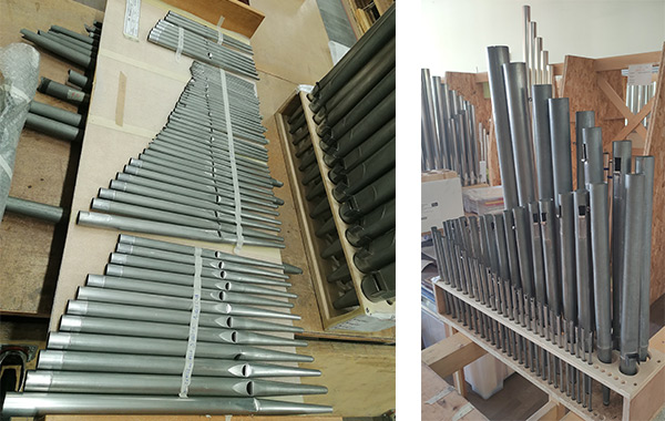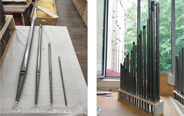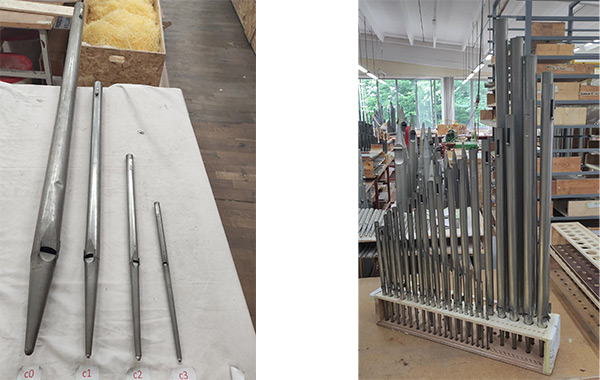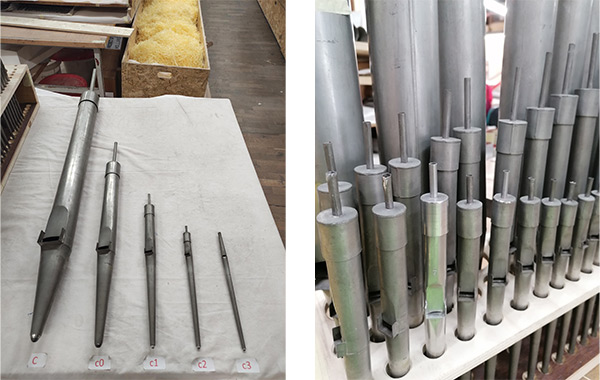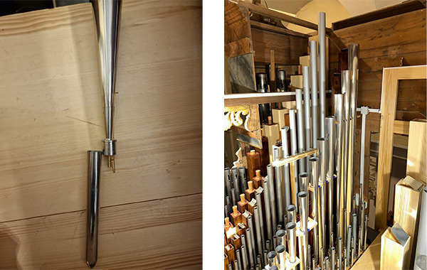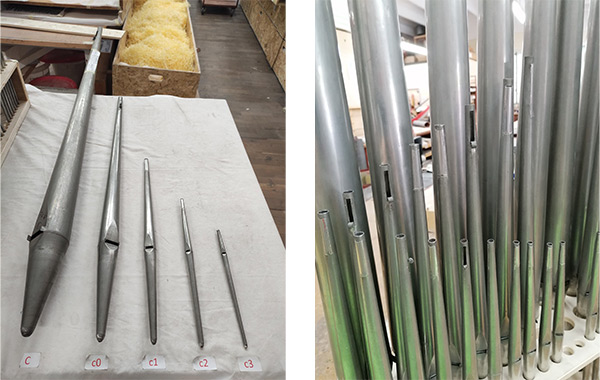The Spitzflöte 4' register has a clear, penetrating and flute-like tone. The pipes of this register are usually metal and have a specific conical shape, which contributes to their characteristic sound. The Spitzflöte 4' is often used for solo passages or in combination with other registers to create a clear and melodic sound.