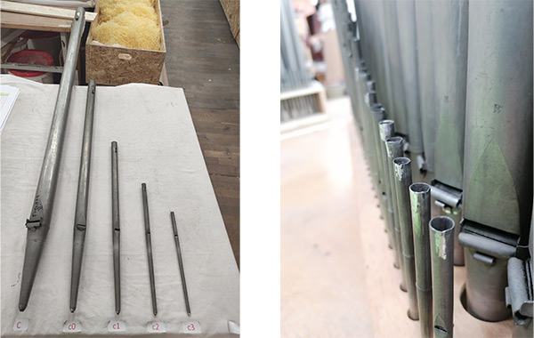 The Violonbass 16' register has a deep, rich and stringy tone that is reminiscent of the sound of a cello or double bass. The pipes of this register are usually metal and have a narrower shape, which contributes to their characteristic sound. The 16' cello bass is often used to create a melodic and harmonically rich bass foundation.